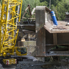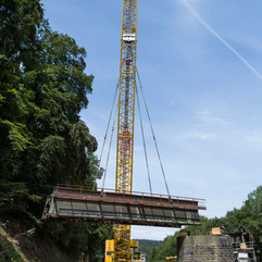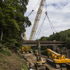 Die Bilder zeigen den Rückbau des Brückenteils der ehem. Eisenbahnbrücke über der B257 zwischen Bitburg und Irrel.